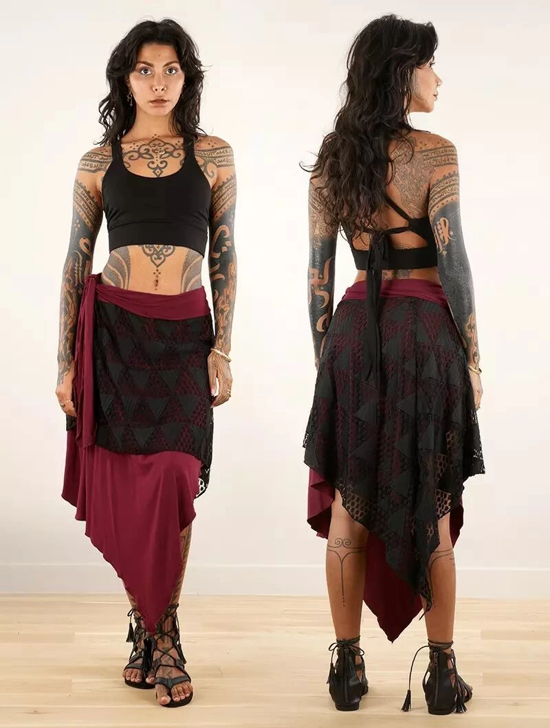 Si tu veux la porter en version tunique : convient du XS au M ! Sinon, ne conviendra qu’en jupe pour les tailles supérieures.