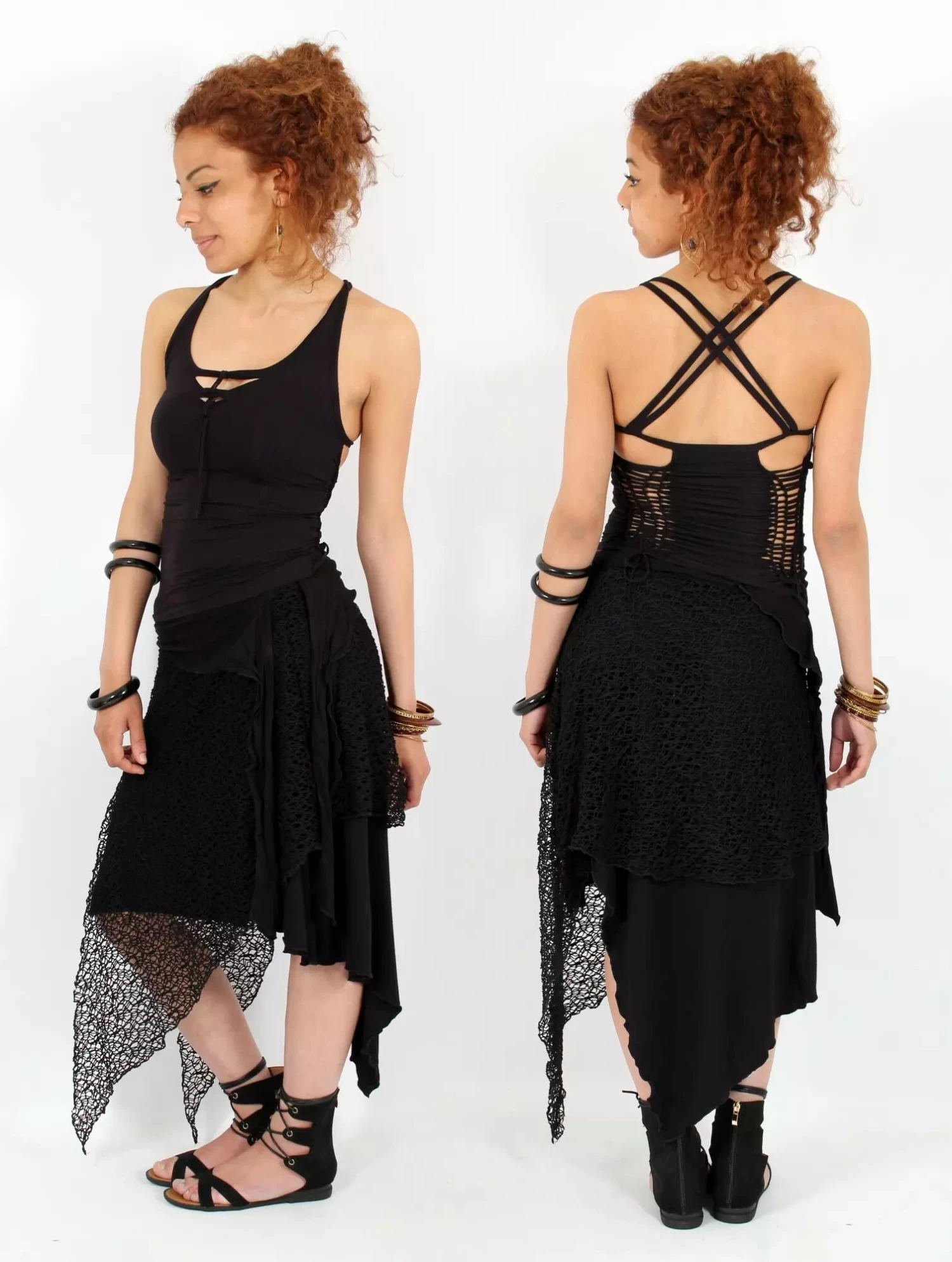 Si tu veux la porter en version tunique : convient du XS au M ! Sinon, ne conviendra qu’en jupe pour les tailles supérieures.