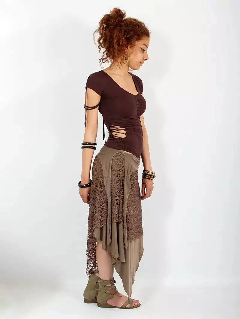 Si tu veux la porter en version tunique : convient du XS au M ! Sinon, ne conviendra qu’en jupe pour les tailles supérieures.