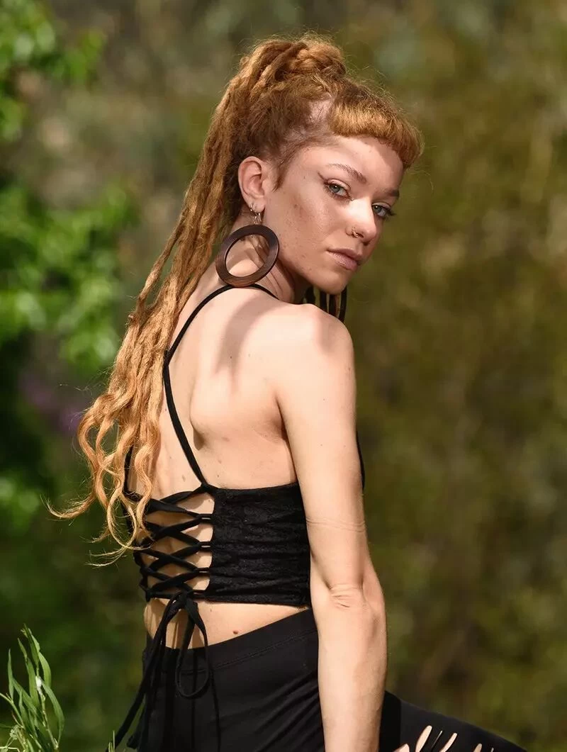 ~· Penses à bien desserrer le laçage pour enfiler le top plus facilement 😉
