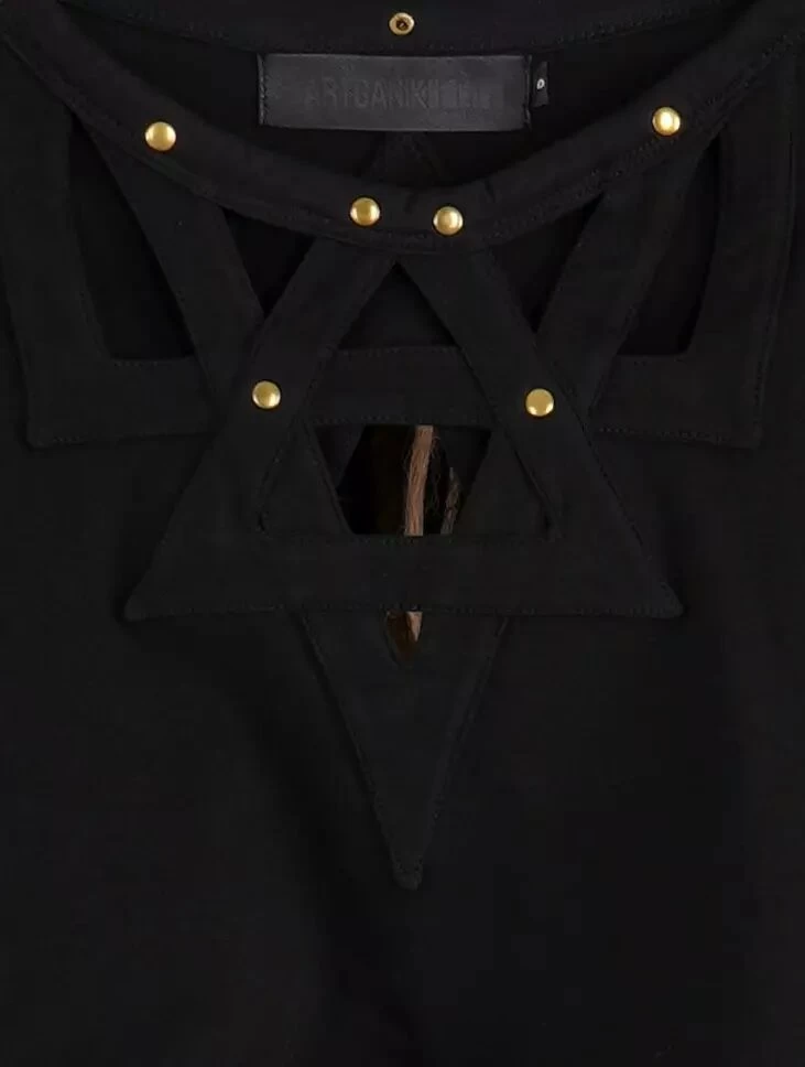 - Superbe design du décolleté avec ouvertures et lanières en coton twill décorées de clou en métal doré