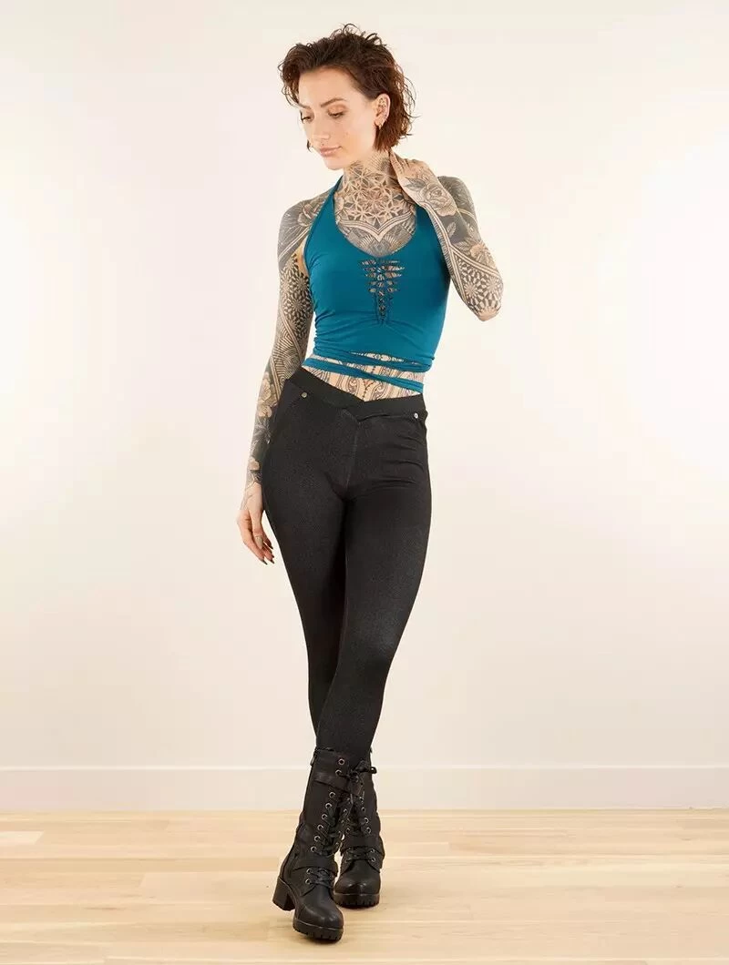 Attention ! En fonction des arrivages, tu pourrais recevoir le top avec deux petites clochettes au bout du décolleté découpé et tressé, à l’avant 🙂 De même que les nuances de couleurs peuvent varier !
