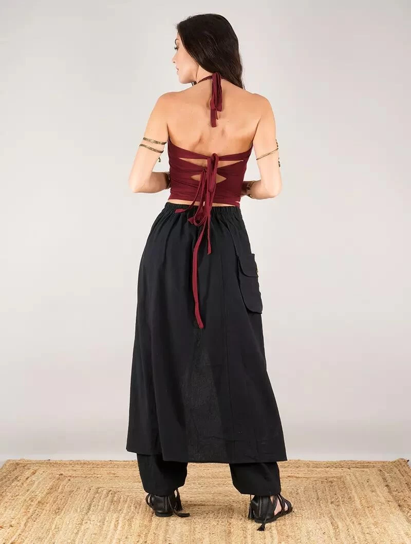 Attention ! En fonction des arrivages, tu pourrais recevoir le top avec deux petites clochettes au bout du décolleté découpé et tressé, à l’avant 🙂 De même que les nuances de couleurs peuvent varier !