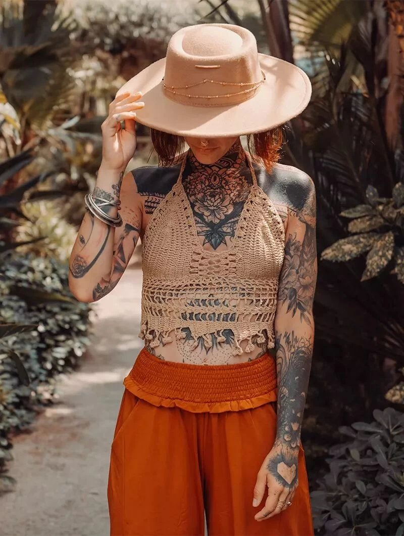 - Top court en crochet à nouer derrière la nuque et dans le dos