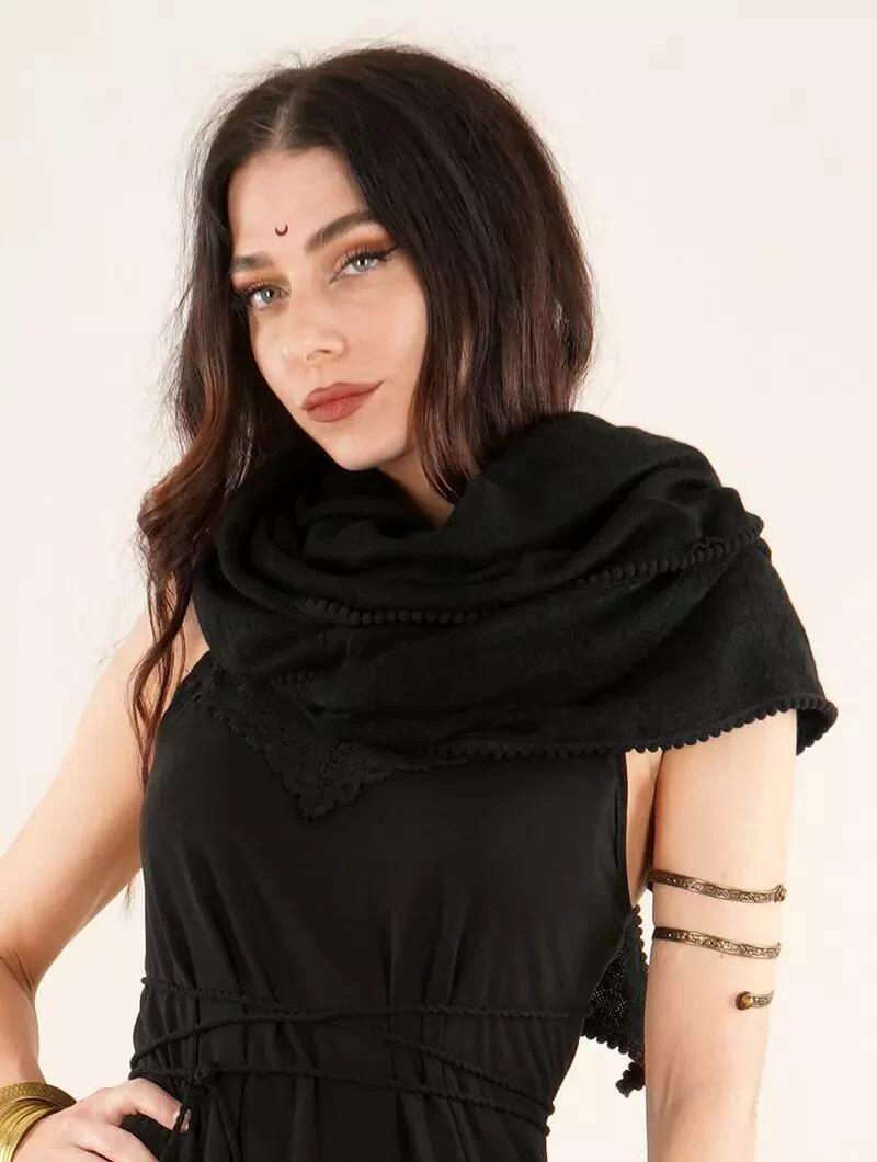 - Jolie écharpe décorée d’un liseré au crochet qui se fini en de nombreuses petites boules