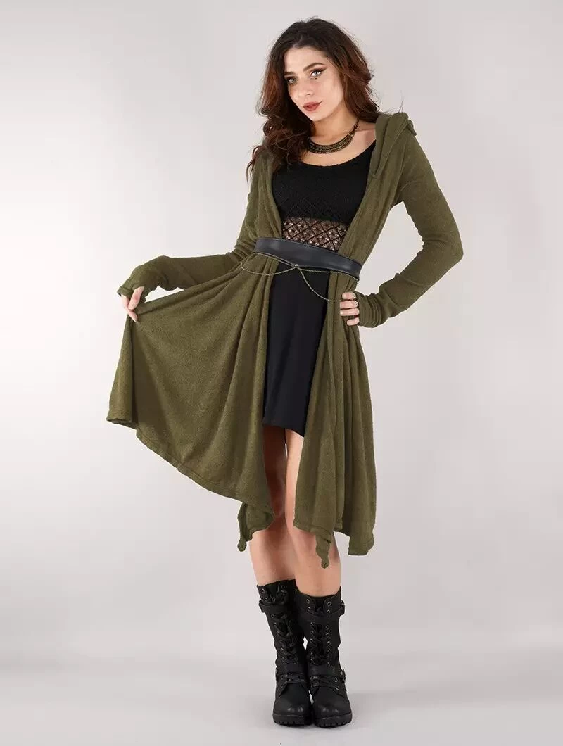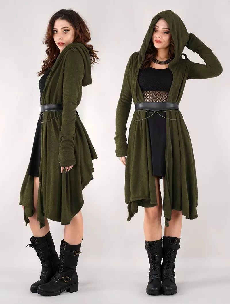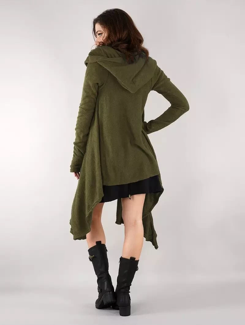 - Magnifique pull châle épais à manches longues et à grosse capuche doublée