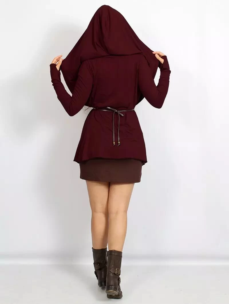 - Grande capuche finie en deux longs pans sur les côtés, plus long que le gilet et finis en pointes