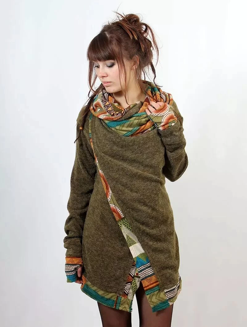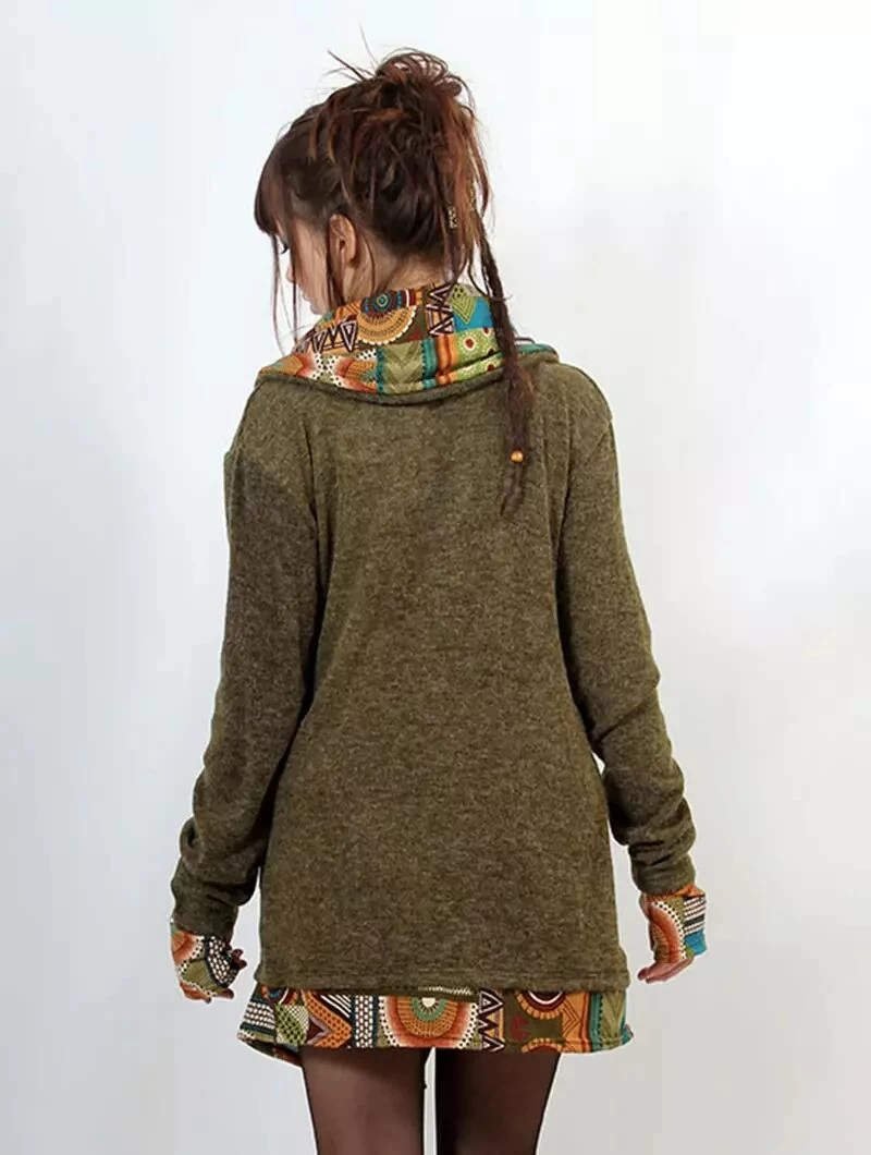 - Peut se porter en pull ou en veste avec un pull en dessous