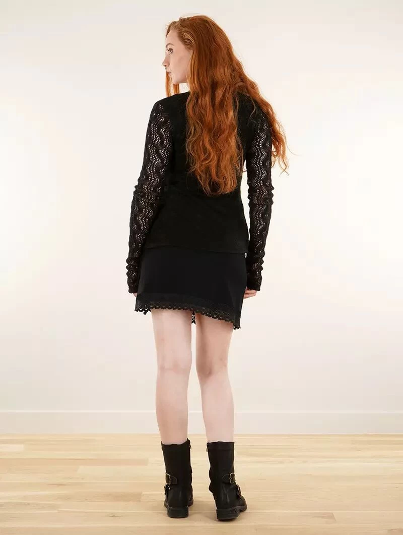 - Jolie jupe courte portefeuille avec un large liseré en dentelle