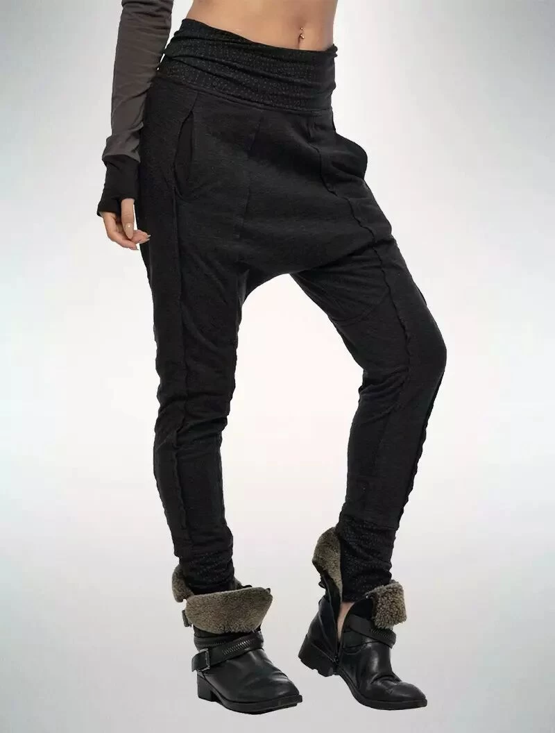 - Entrejambe basse et coupe confortable au niveau du bassin et ajustée sur les jambes