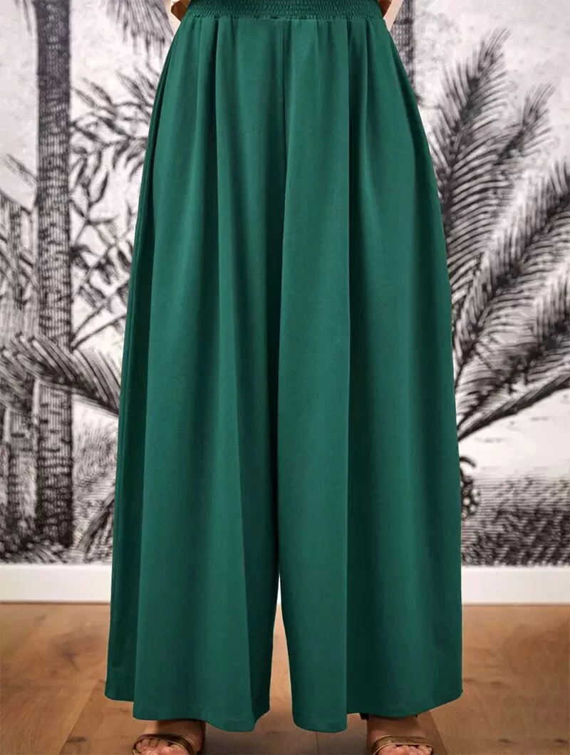 - Joli pantalon large et très évasé au style jupe-culotte avec ceinture bandeau élastiqué et smockée