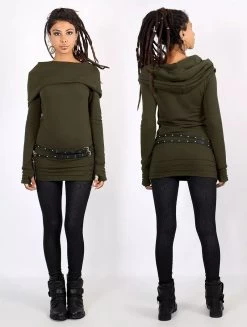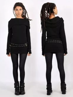 Robe Sans Manches Courte Devant Et Longue Derrière « Marrakech », Vert Canard Et Noir