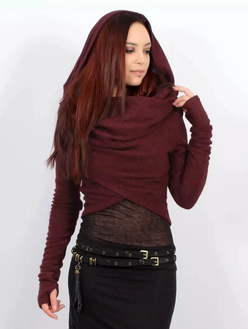 Crop top en mailles à capuche “Nadjäa” by Yggdrazil :