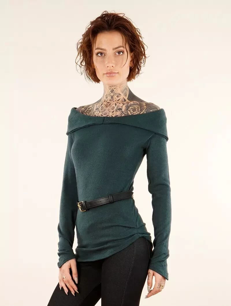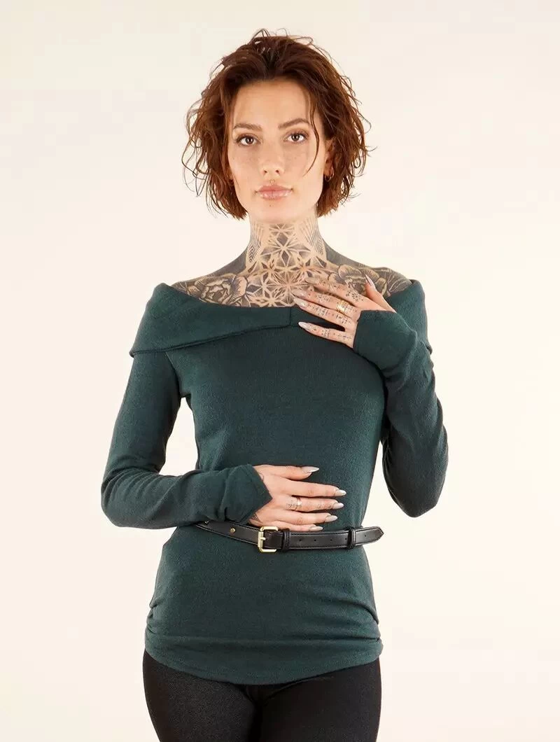 - Manches longues plissées sur les poignets qui se terminent légèrement en pointes