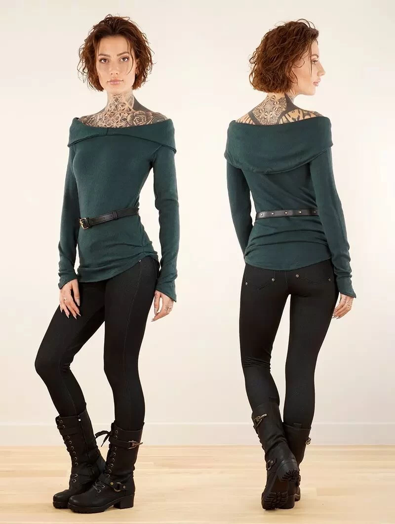 - Gros col doublé et original qui tombe élégamment dans le dos et se met sur les épaules pour dessiner un joli col