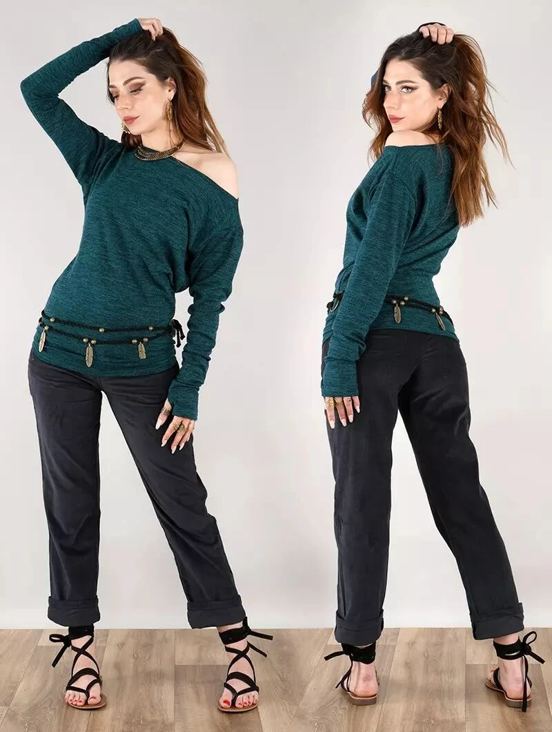 - Superbe pull à manches longues chauves-souris et large encolure bateau