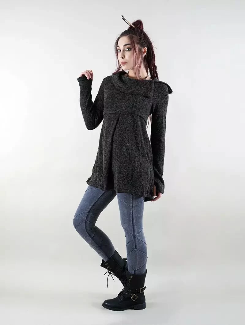 - Pull évasé à partir de la poitrine avec un joli pli en supriqûre de chaque côté pour accentuer l’effet
