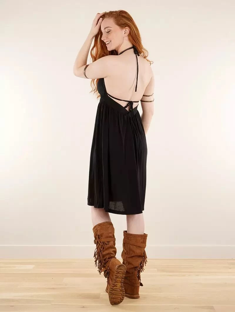 - Dos nu élastiqué avec une jolie finition croisée et en pointe