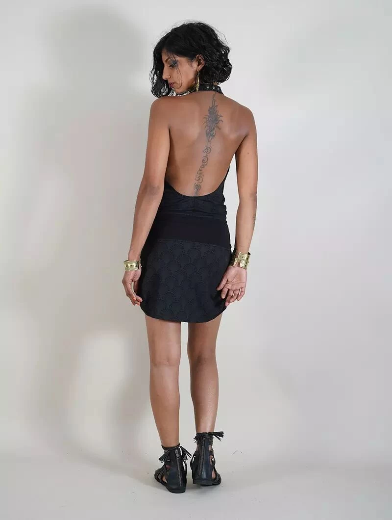 - Plis cousus décorés de rivets hexagones en laiton de chaque côté en bas de la robe