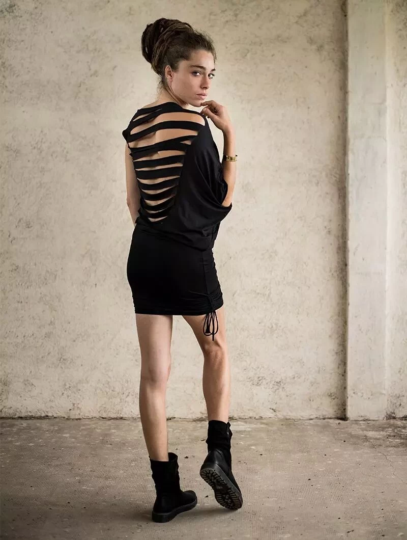 - Tu peux ajuster et froisser plus ou moins le bas grâce aux lanières pendantes