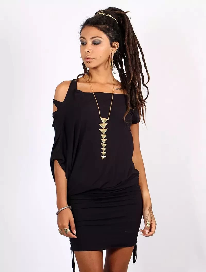 - Coupe ample avec une épaule tombante mais moulante en bas