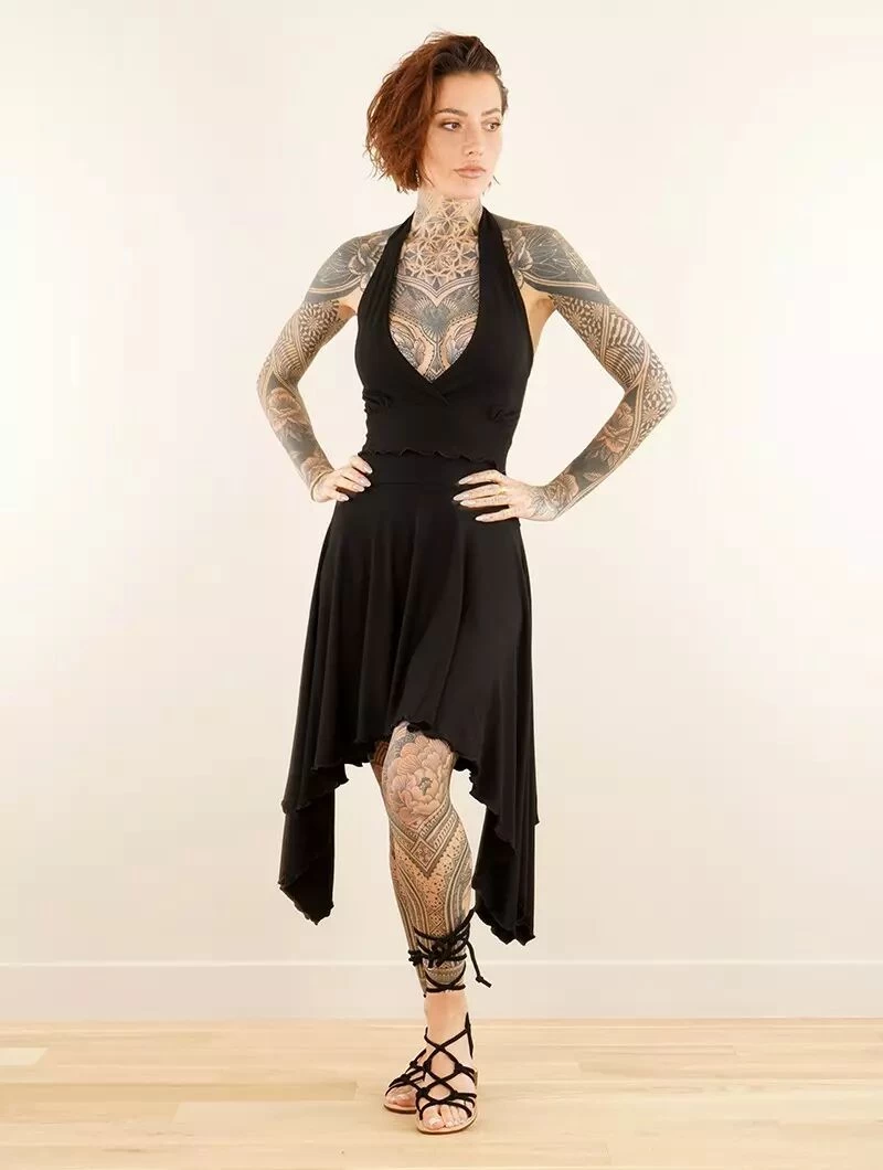 - Robe asymétrique dotée d’un joli design grâce aux surpiqûres et plis cousus !