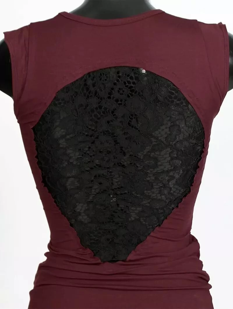 - Large partie en dentelle en forme de goutte inversée laissant joliment apparaître ton dos
