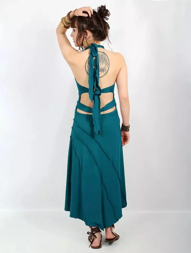 - Robe longue avec un joli design grâce aux surpiqûres et plis cousus !