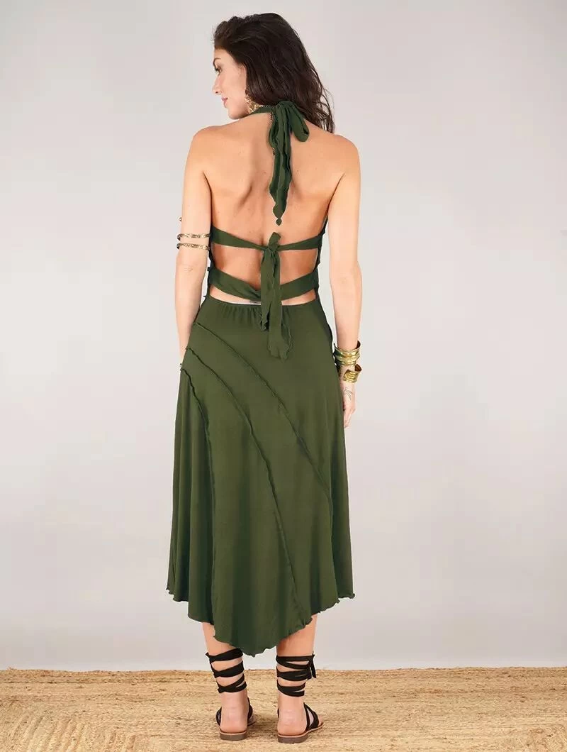 - Robe longue avec un joli design grâce aux surpiqûres et plis cousus !
