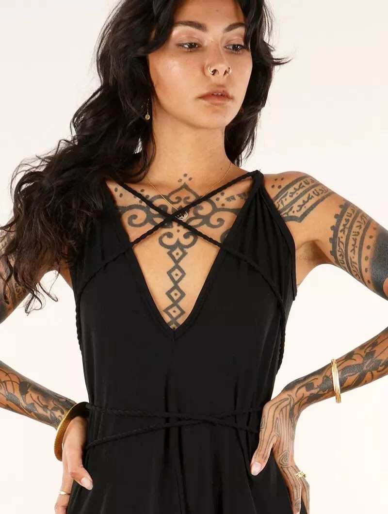 - Tu peux enrouler les bretelles autour de ta taille pour cintrer le vêtement