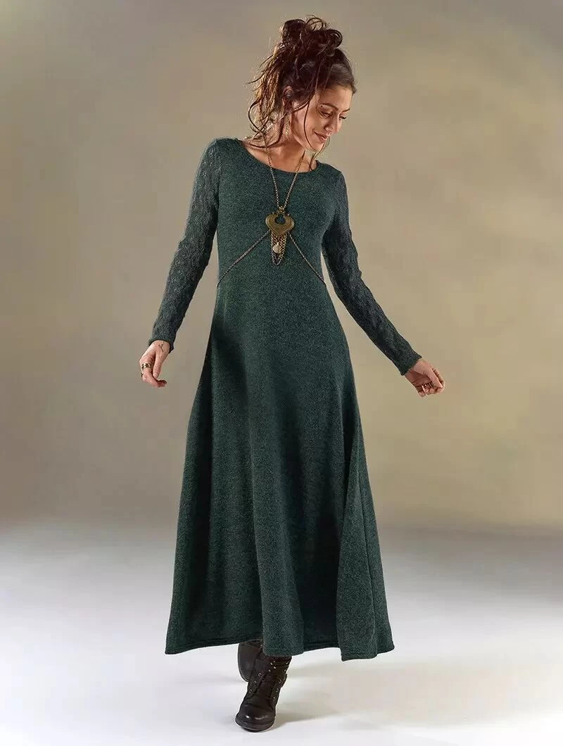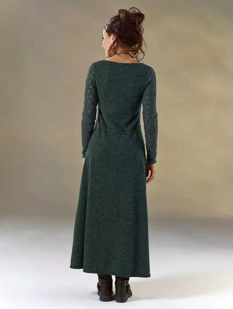 - Superbe robe pull longue bi matière à manches longues en crochet et large encollure ronde