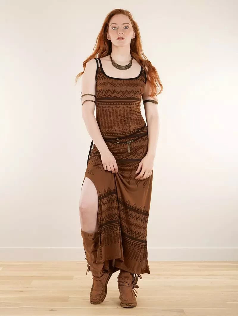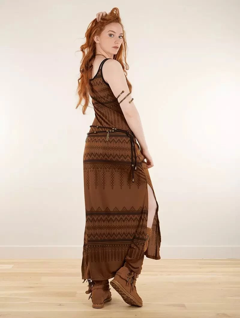 Robe longue tattoo à doubles bretelles “Electra Aztec” by Gado Gado :
