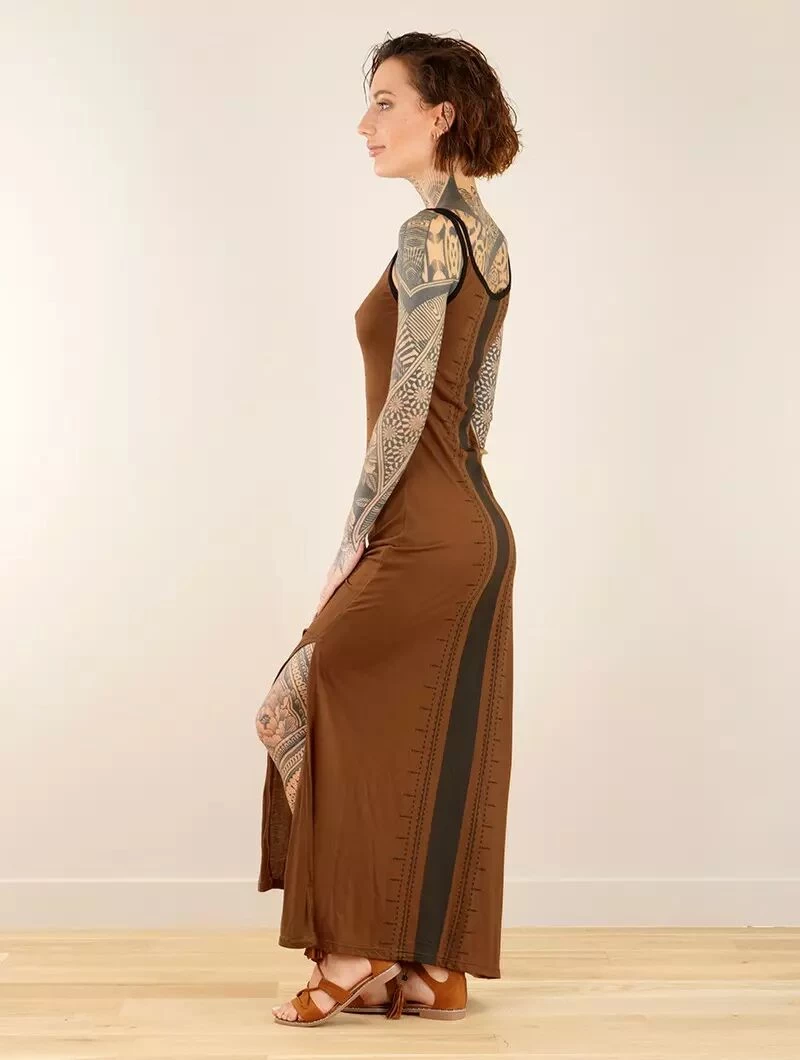 Robe longue tattoo à doubles bretelles “Electra Umbas” by Gado Gado :