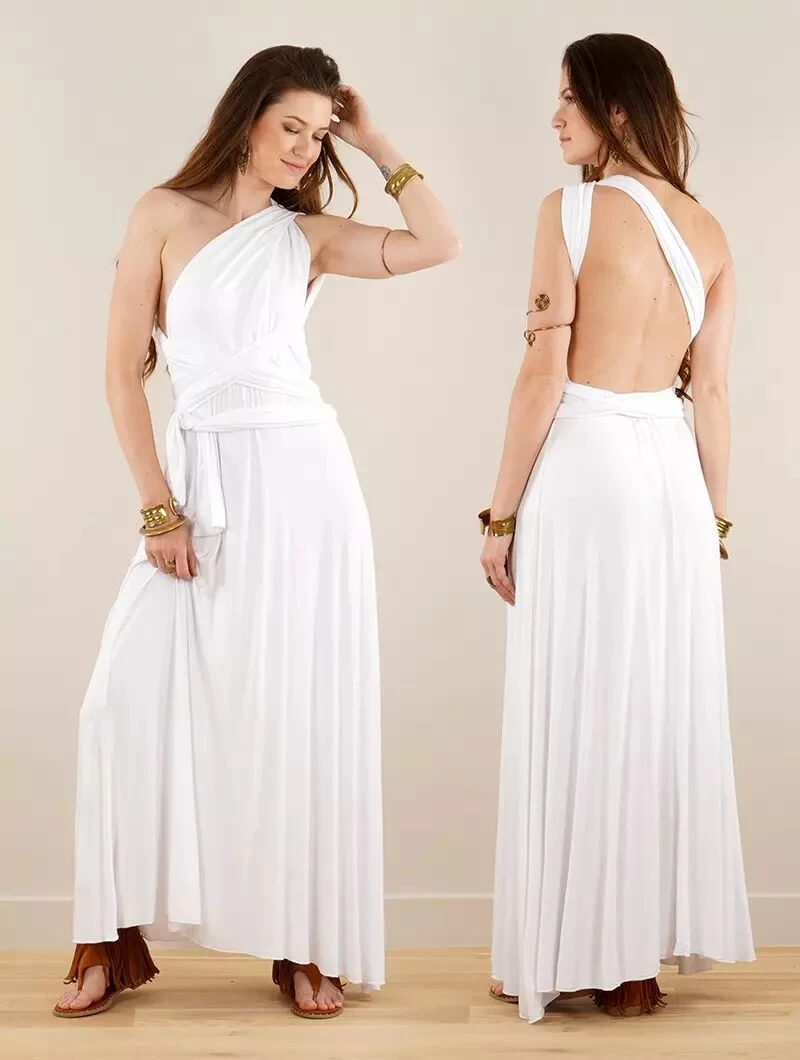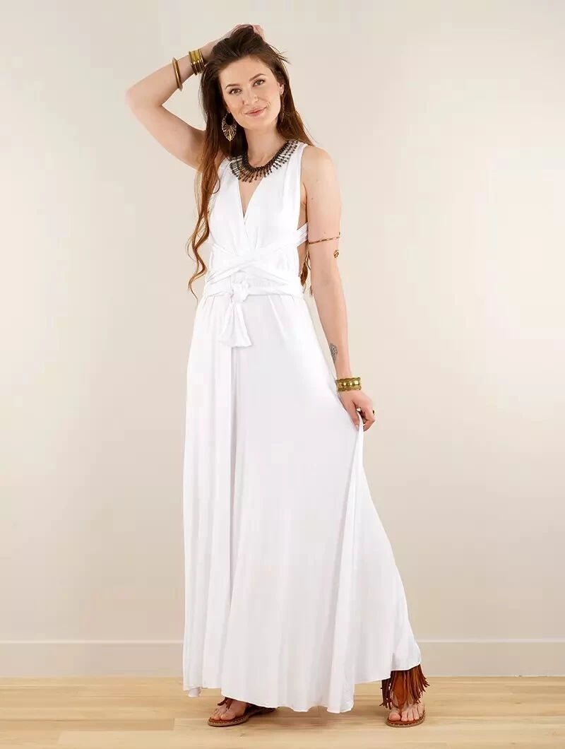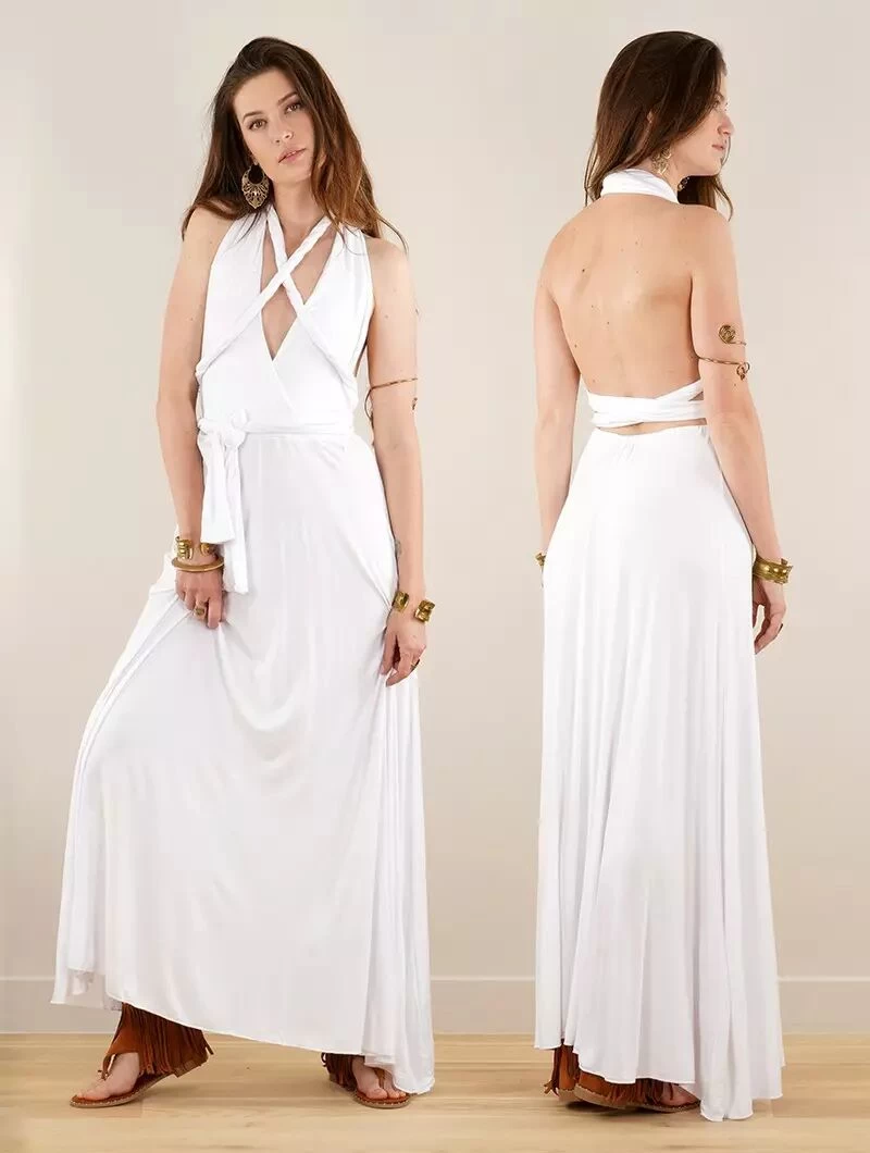 - Robe longue à col V plongeant avec joli un tombé drapé