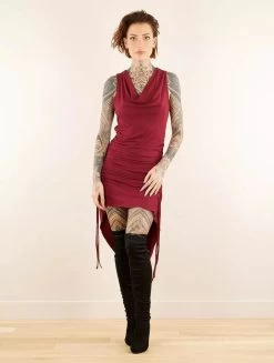- Robe asymétrique avec col bénitier et dos plus long et en pointe arrondie