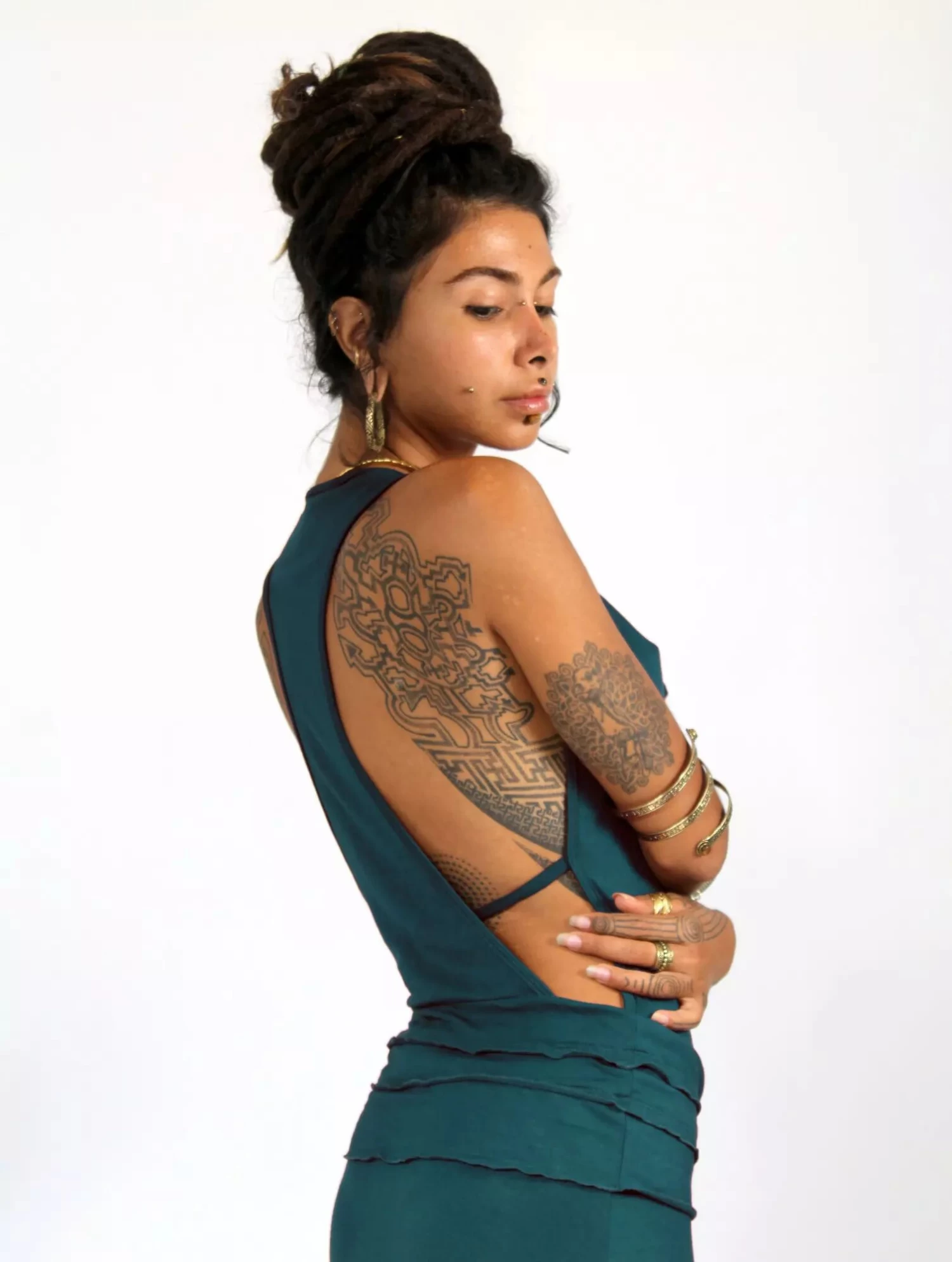 - Coupe près du corps avec de grandes ouvertures sur les côtés qui laissent une simple et jolie bande dans le dos