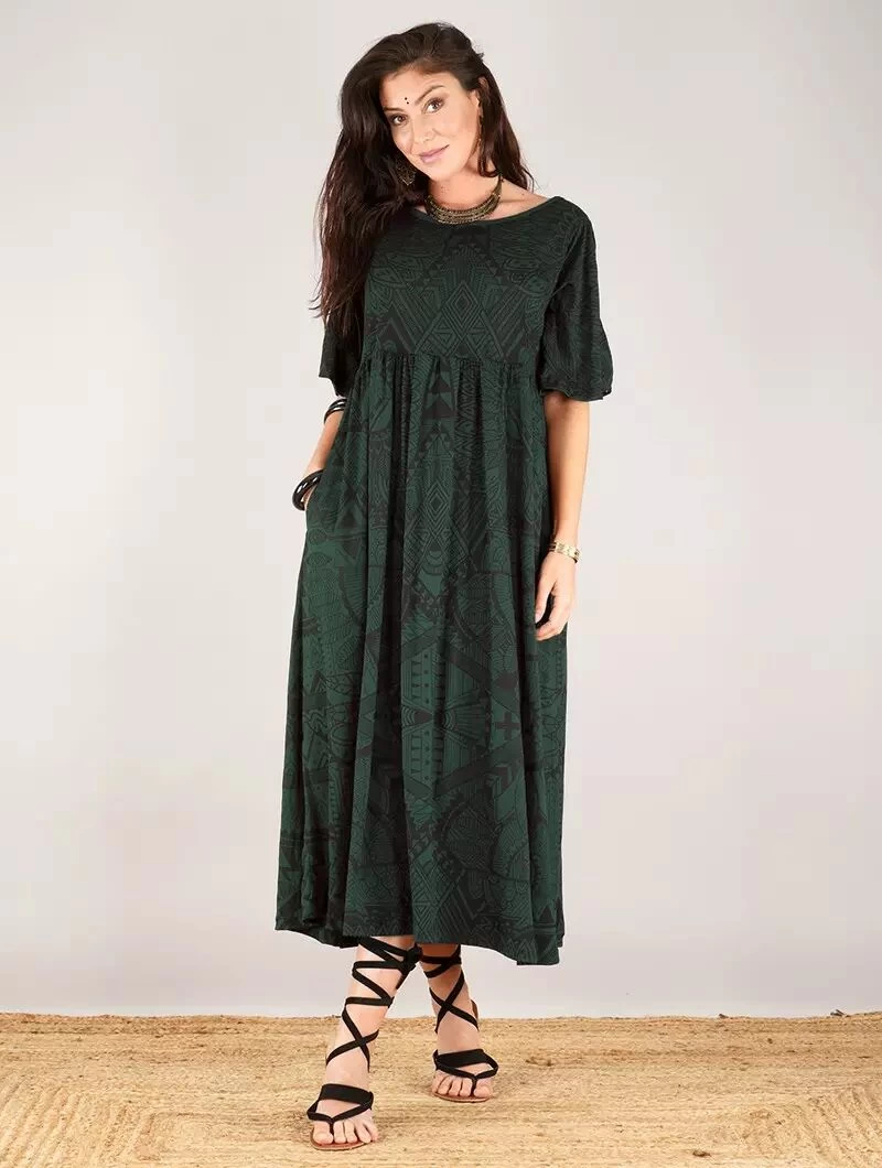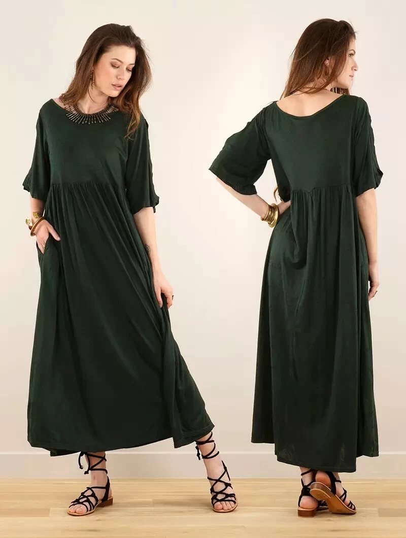 - Jolie robe longue maxi avec manches courtes amples et large encolure ronde