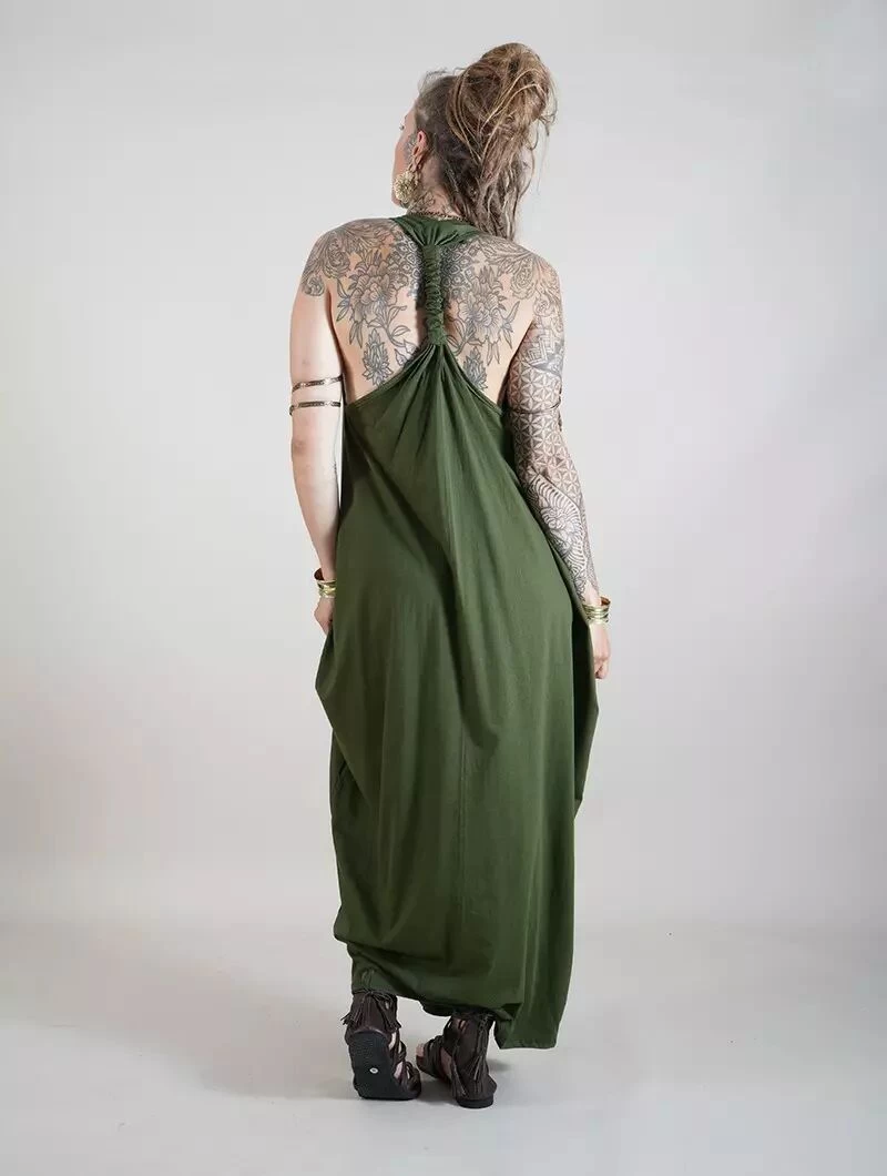 - Larges bretelles se rejoignant dans le dos en une lanière nouée