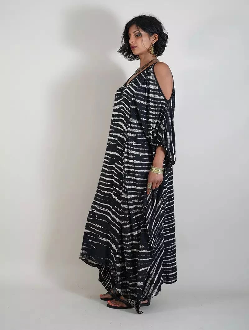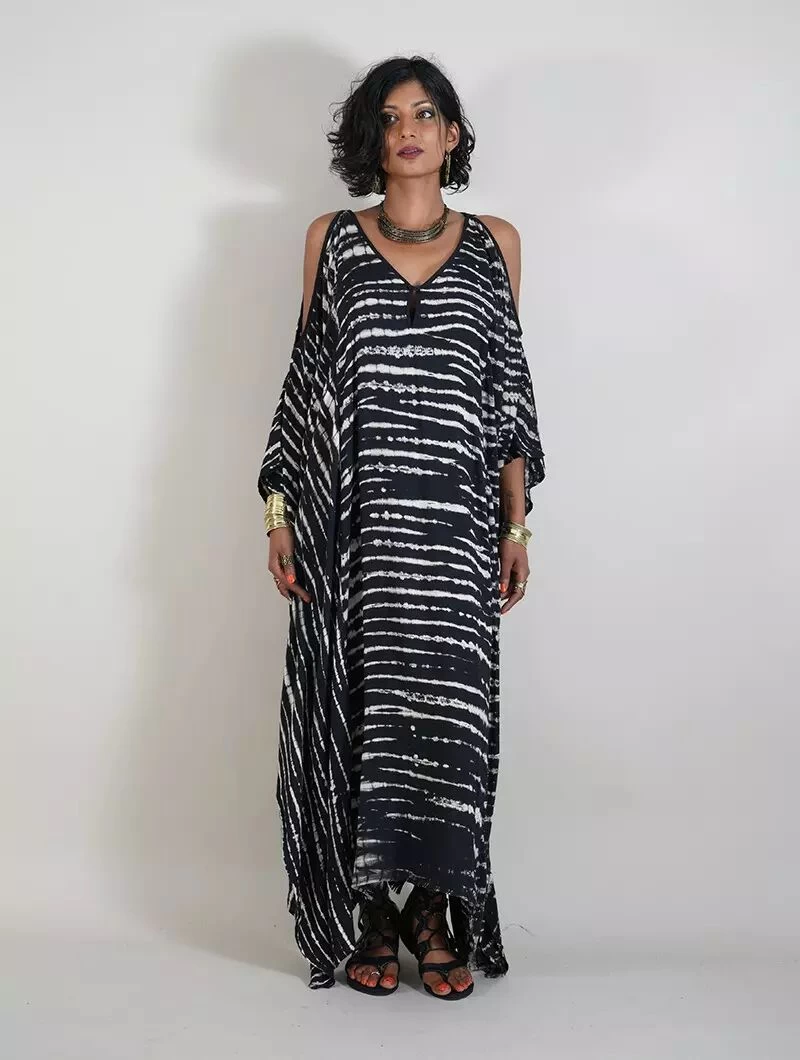 Maxi robe longue type kaftan “Shoulder Zebra” by Marada :