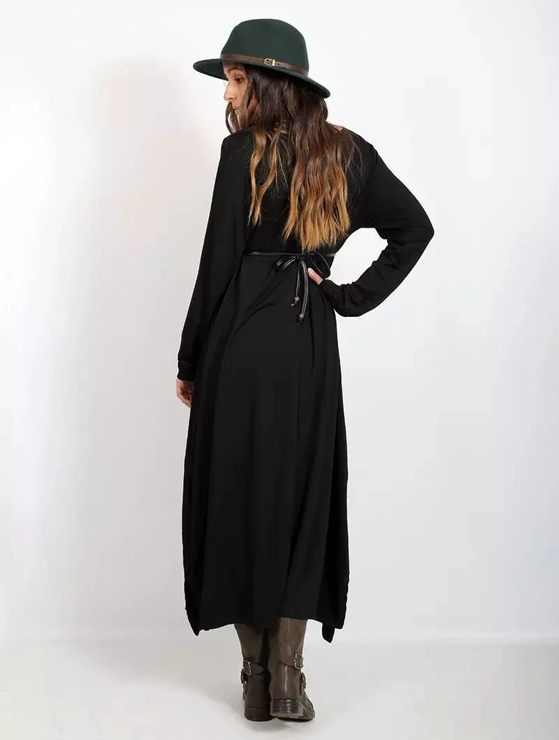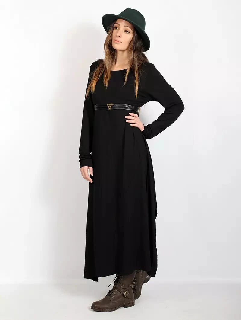 - Maxi robe longue à col rond et manches longues avec joli un tombé drapé