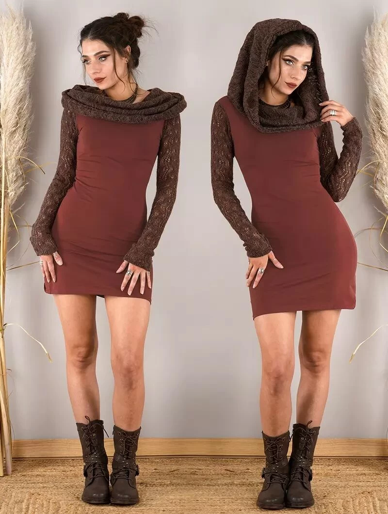 - Jolie robe à manches longues et large col capuche qui peut être mis élégamment sur les épaules
