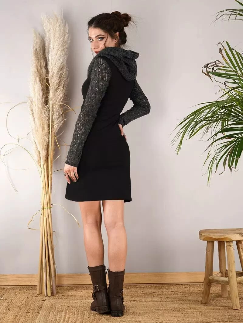 - Jolie robe à manches longues et large col capuche qui peut être mis élégamment sur les épaules