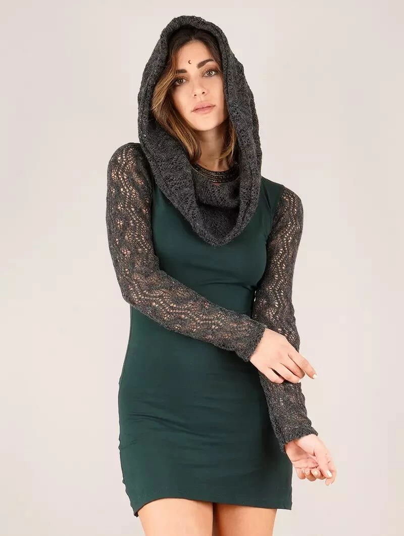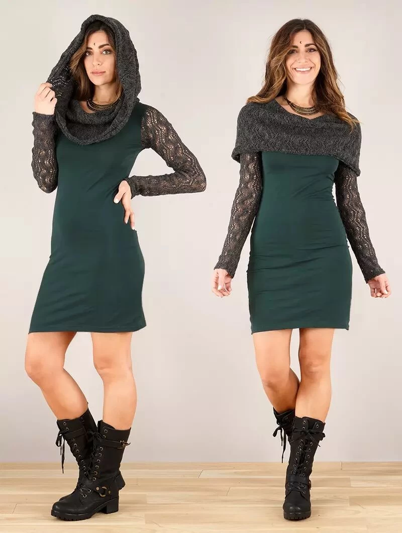 - Jolie robe à manches longues et large col capuche qui peut être mis élégamment sur les épaules