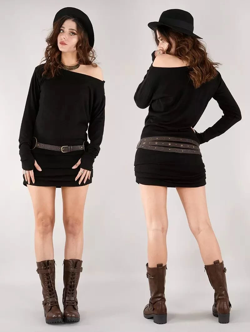 - Superbe robe pull à manches longues chauves-souris et large encolure bateau