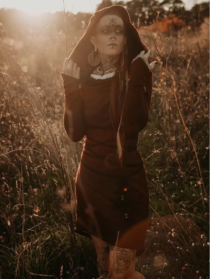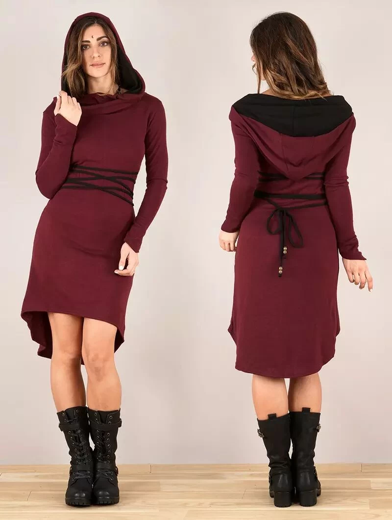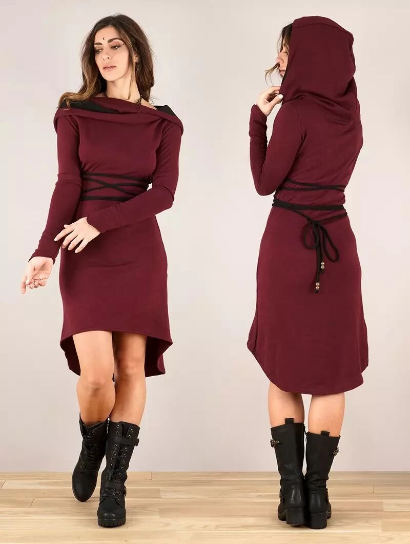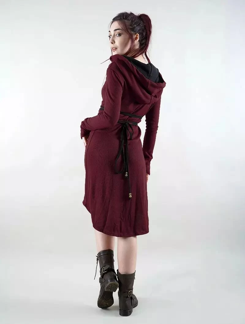 - Robe mi-longue et chaude, à manches longues et à capuche large croisée sur le devant