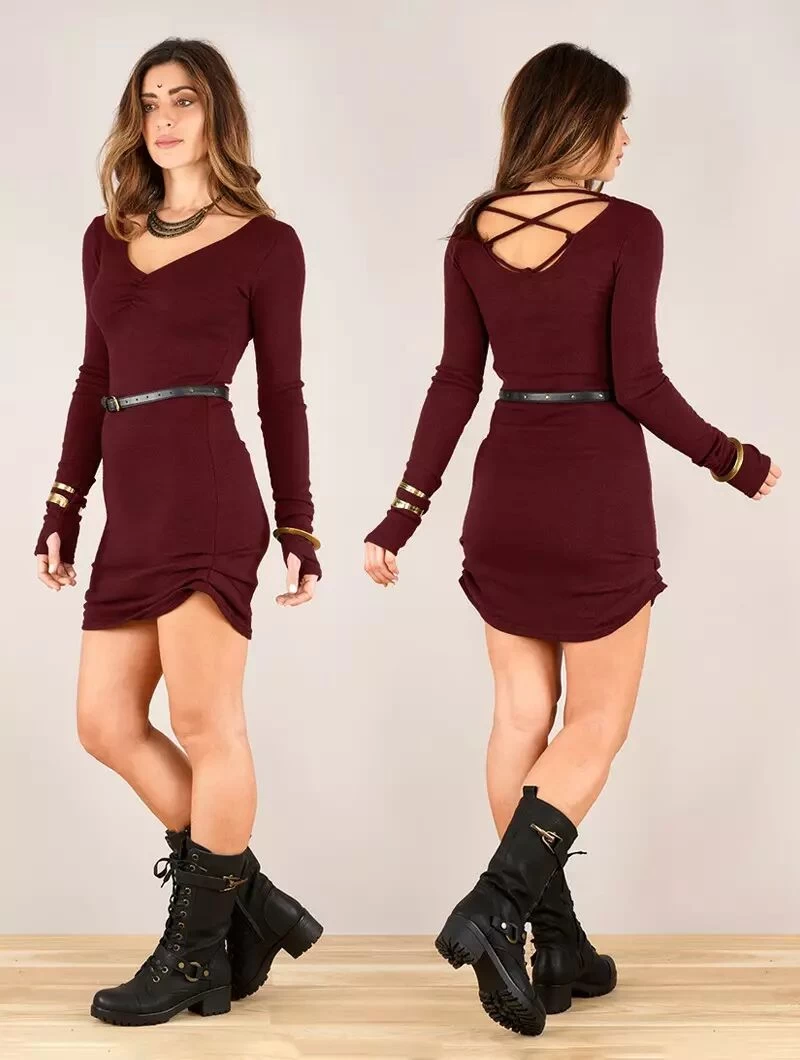 - Robe à manches longues et col en V avec effet plissé au centre