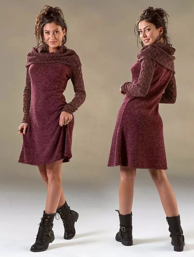- Superbe robe patineuse bi matière à manches longues et gros col en crochet