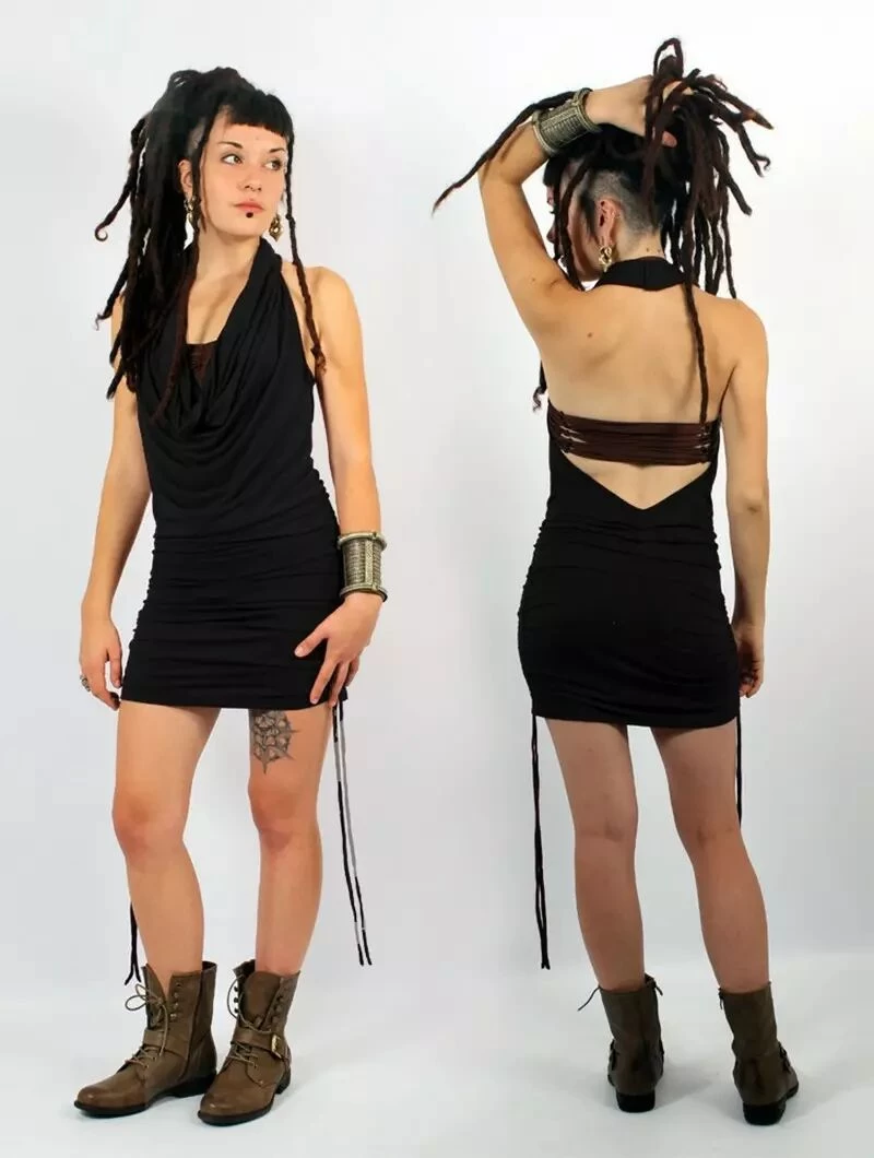 - Grand col bénitier plissé et dos nu. Tu peux aussi mettre le col sur tes épaules !