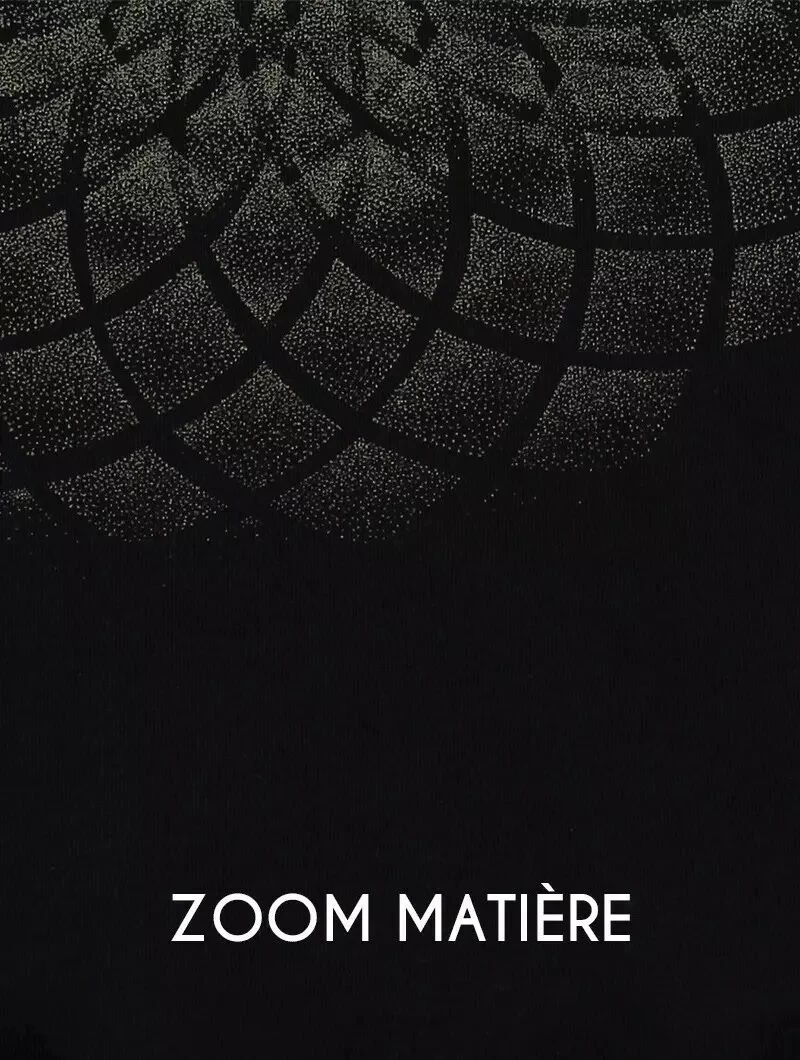 - Joli imprimé d’un lotus issu de la Géométrie Sacrée et dessiné avec la technique du Dotwork utilisée dans le tatouage !