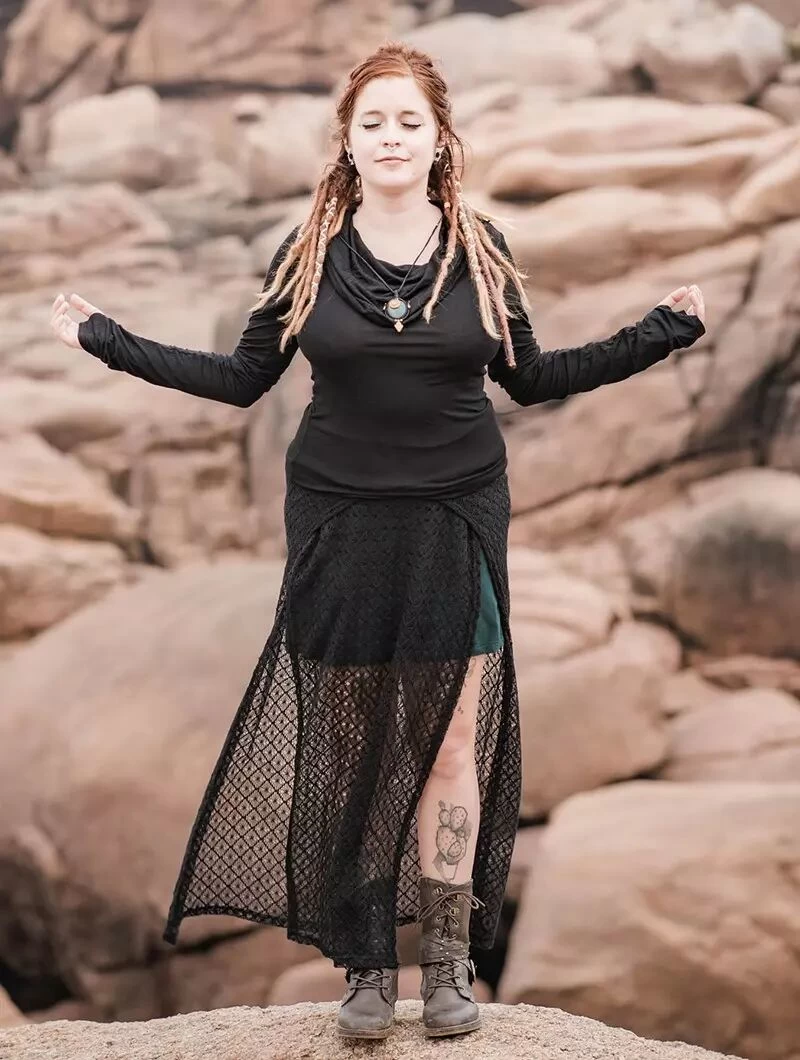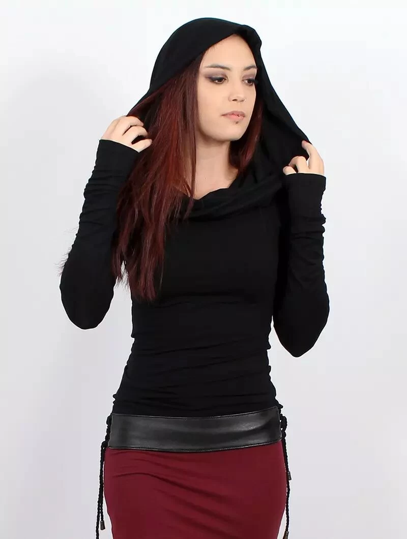 - Manches longues plissées sur les poignets avec passage pour les pouces